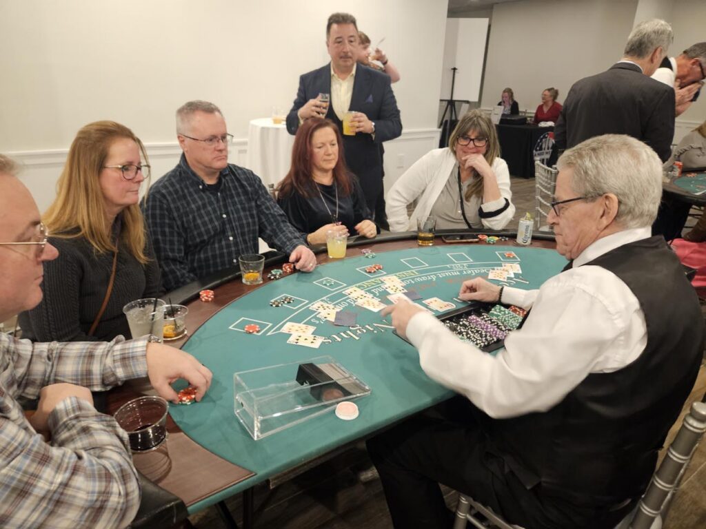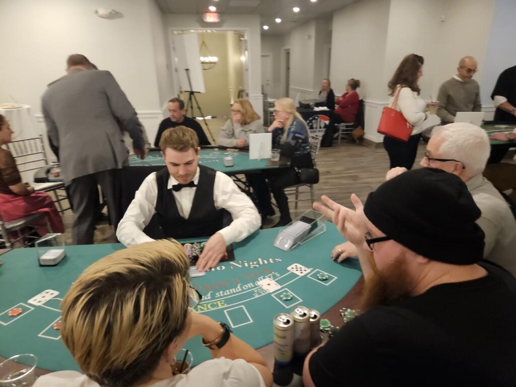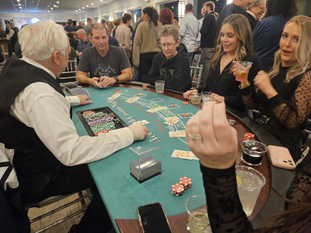 From 7 to 10 PM guests will play classic casino games featuring Blackjack, Craps, Roulette, and Poker. There will be a Gift Auction, a 50/50 drawing and exciting entertainment to enjoy throughout the evening.